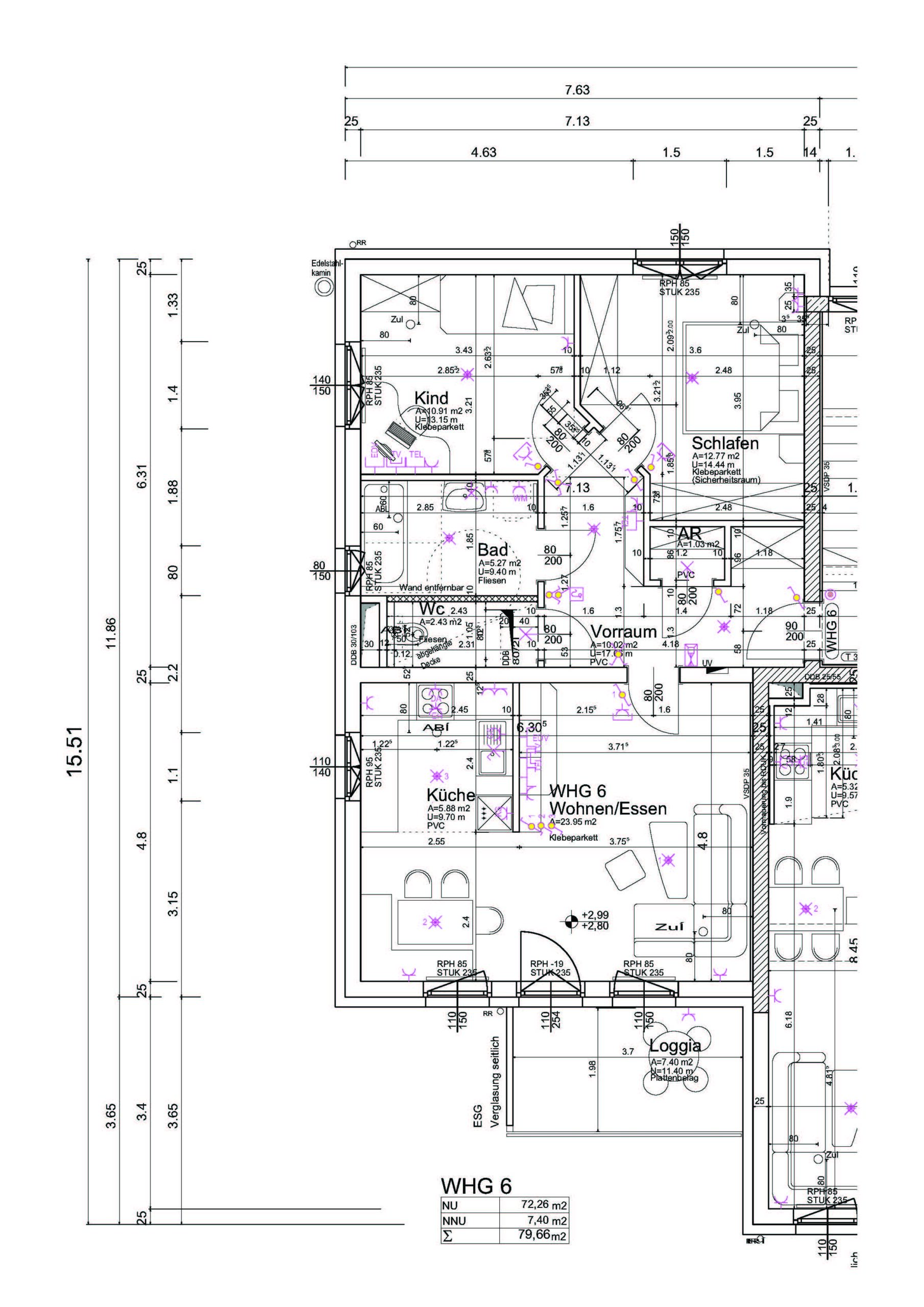 Kochnische, Wohn/-Essbereich, Schlafzimmer, Kinderzimmer, Vorraum, Abstellraum, Bad, WC
