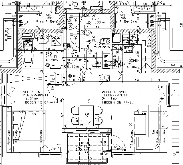 Kochnische, Wohn/-Essbereich, Schlafzimmer, Vorraum, Abstellraum, Bad, WC