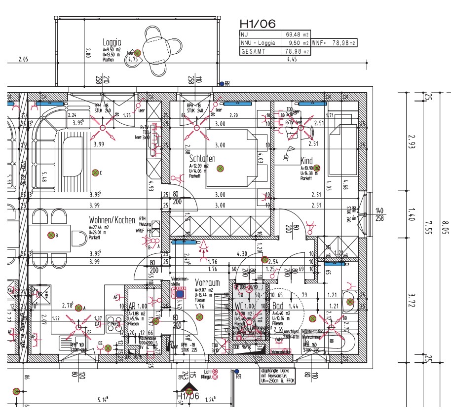 Kochnische, Wohn/-Essbereich, Schlafzimmer, Kinderzimmer, Vorraum, Abstellraum, BAD, WC