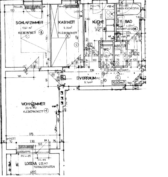 Küche, Essbereich, Wohnzimmer, Schlafzimmer, Kinderzimmer, Vorraum, Abstellraum, Bad, WC