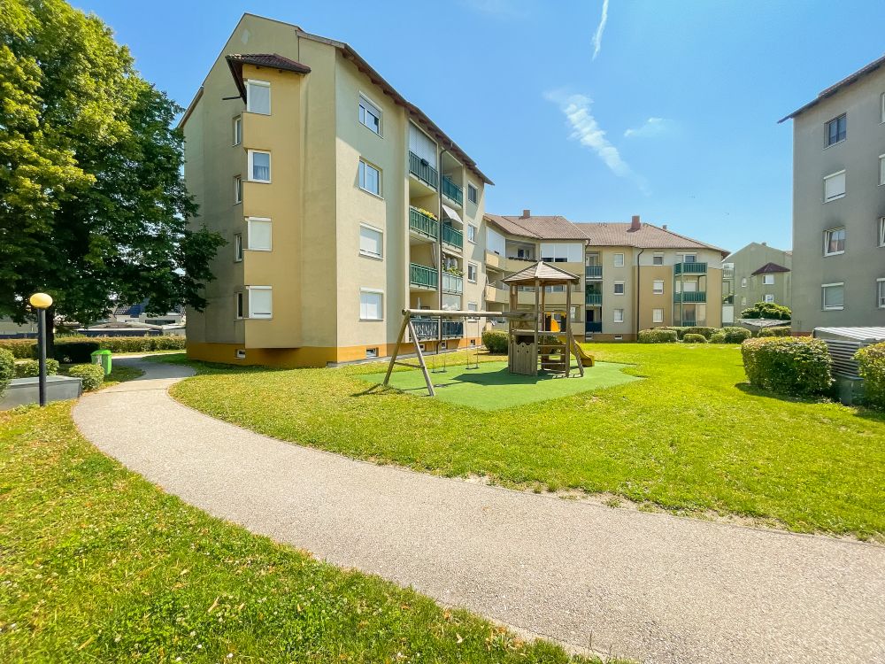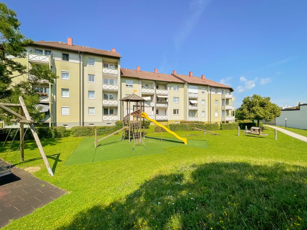 Schöne 3-Zimmer-Wohnung in Wels bestehend aus Küche, Wohnzimmer, Schlafzimmer, Kinderzimmer, Vorraum Bad, WC Abstellraum, Loggia und Tiefgaragenabstellplatz.