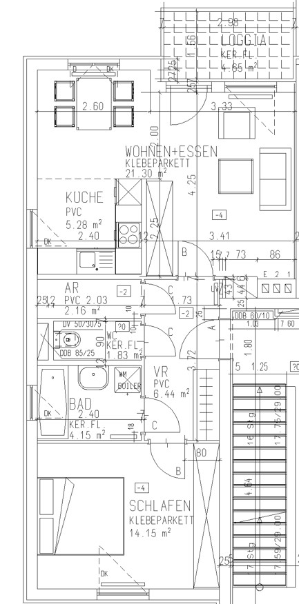 Kochnische, Wohn/-Essbereich, Schlafzimmer, Vorraum, Abstellraum, BAD, WC